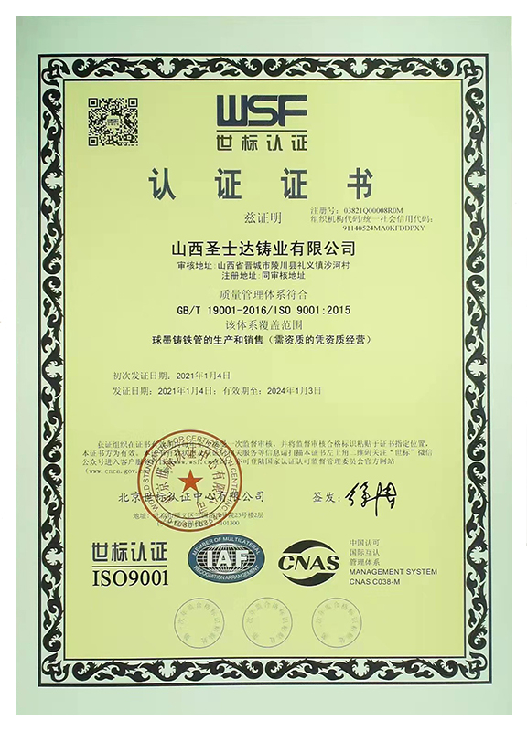 圣士達球墨鑄鐵管的主要特點